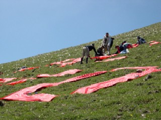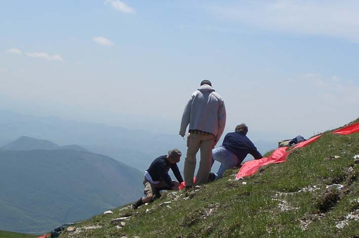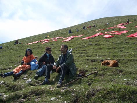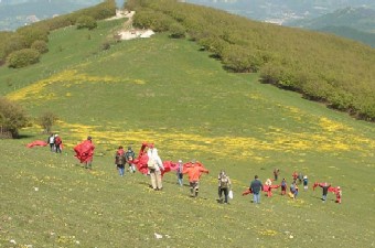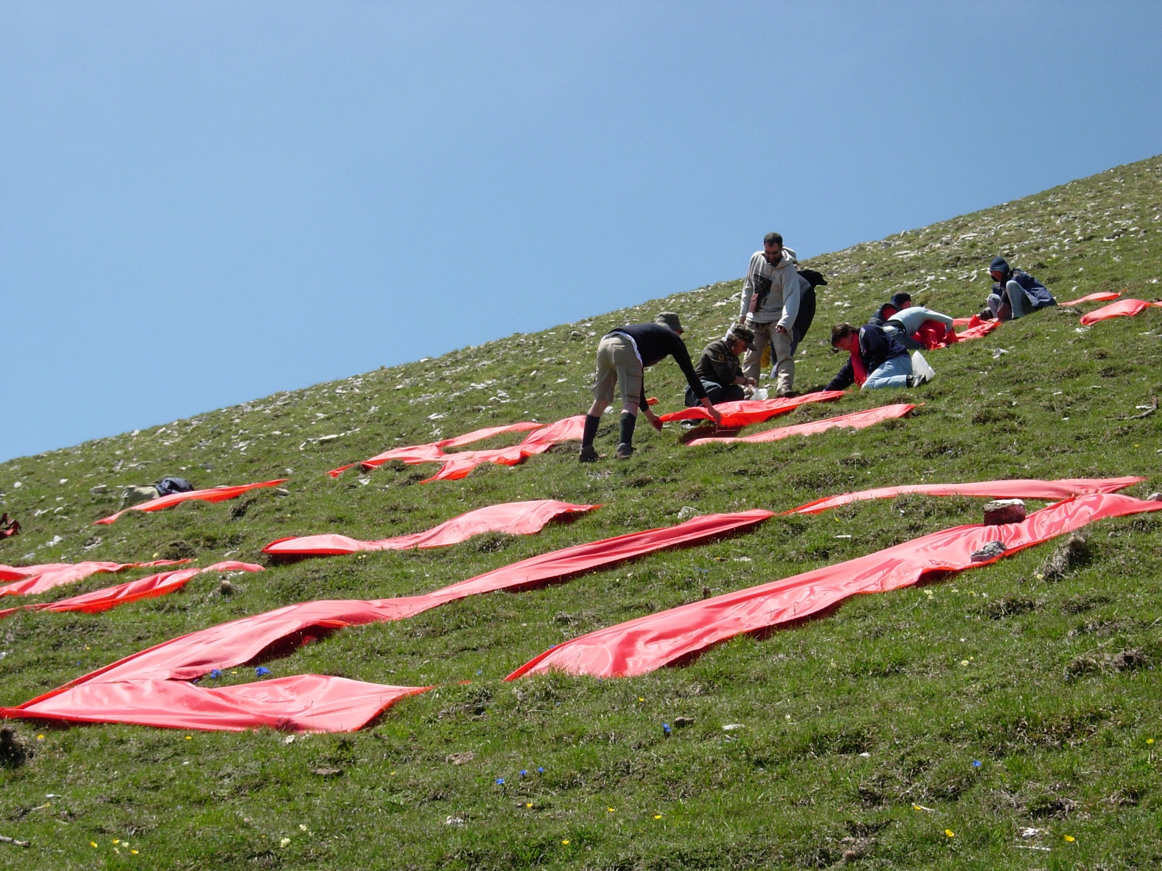e' compiuta: i volontari soddisfatti riportano a valle tutti i drappi rossi