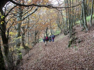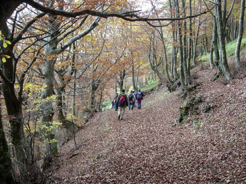 faggeta nel suo classico aspetto autunnale accoglie gli escursionisti.