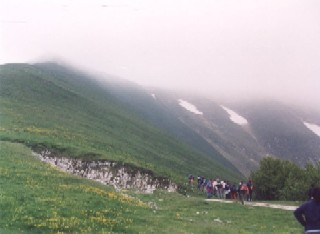 ad uno gli escursionisti affaticati ma soddisfatti .