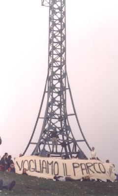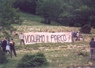 Gli escursionisti stendono lo striscione della campagna per il Parco Nazionale