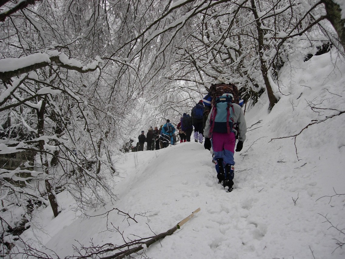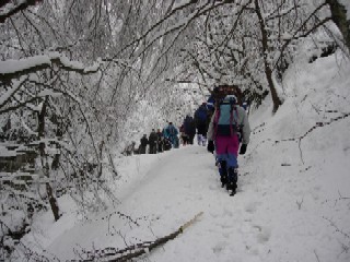 nella neve! Francesca, Monica e Claudia durante lo spettacolare attraversamento del bosco innevato. |