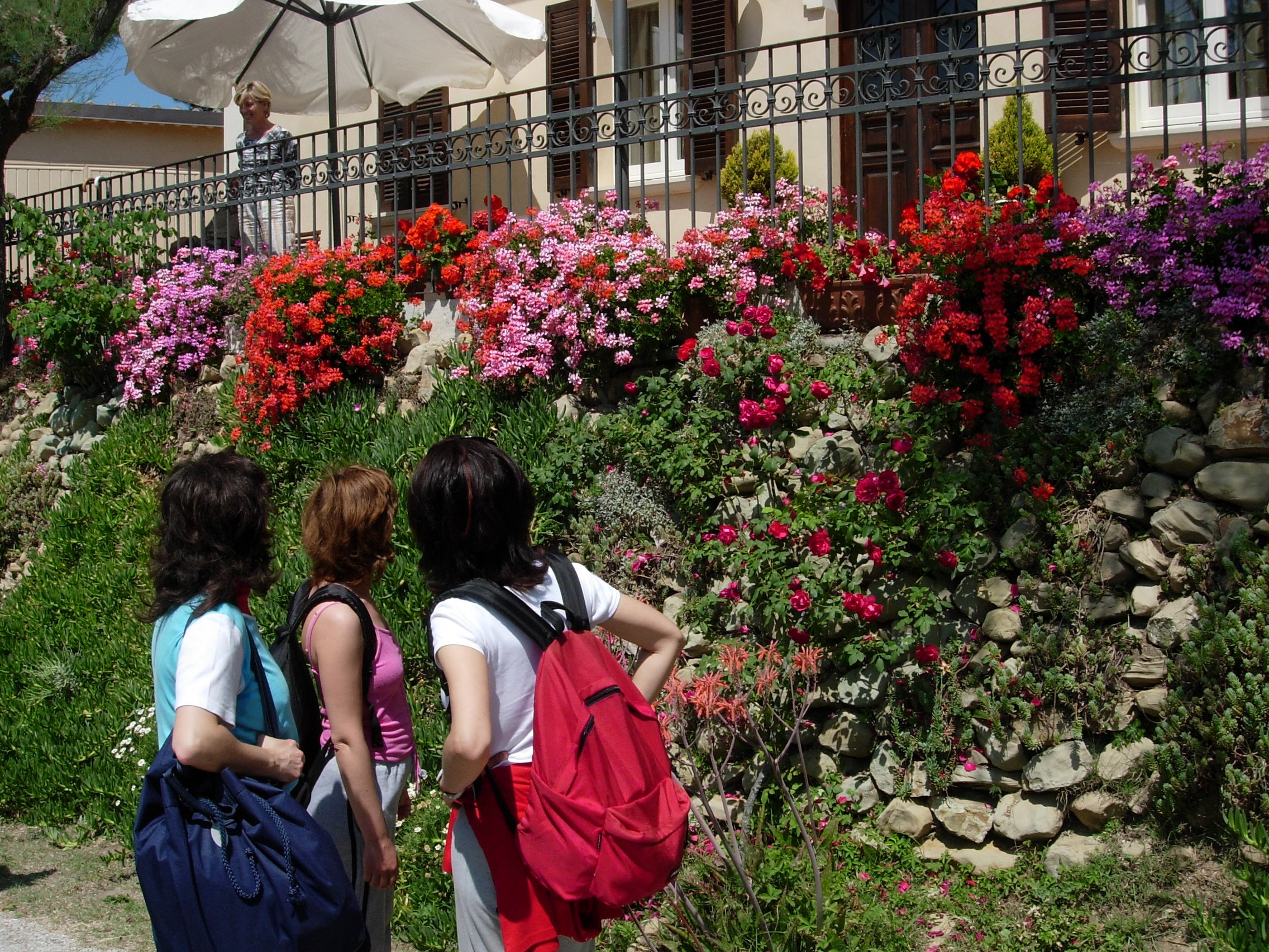| Fiorenzuola di Focara ci accoglie con questa bella cascata di fiori e la sua ineguagliabile vista sul mare. |