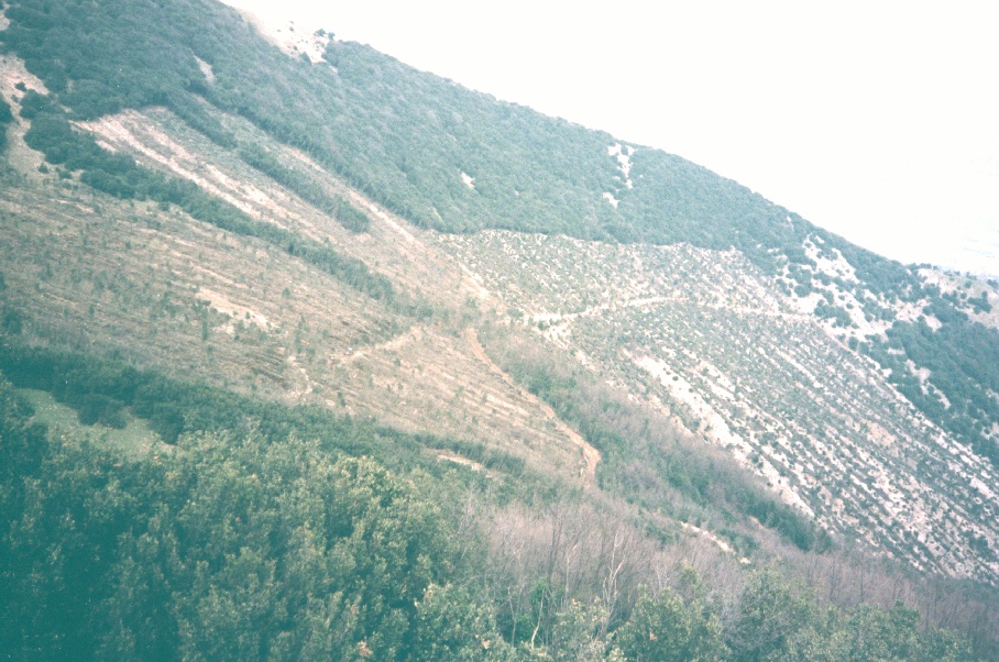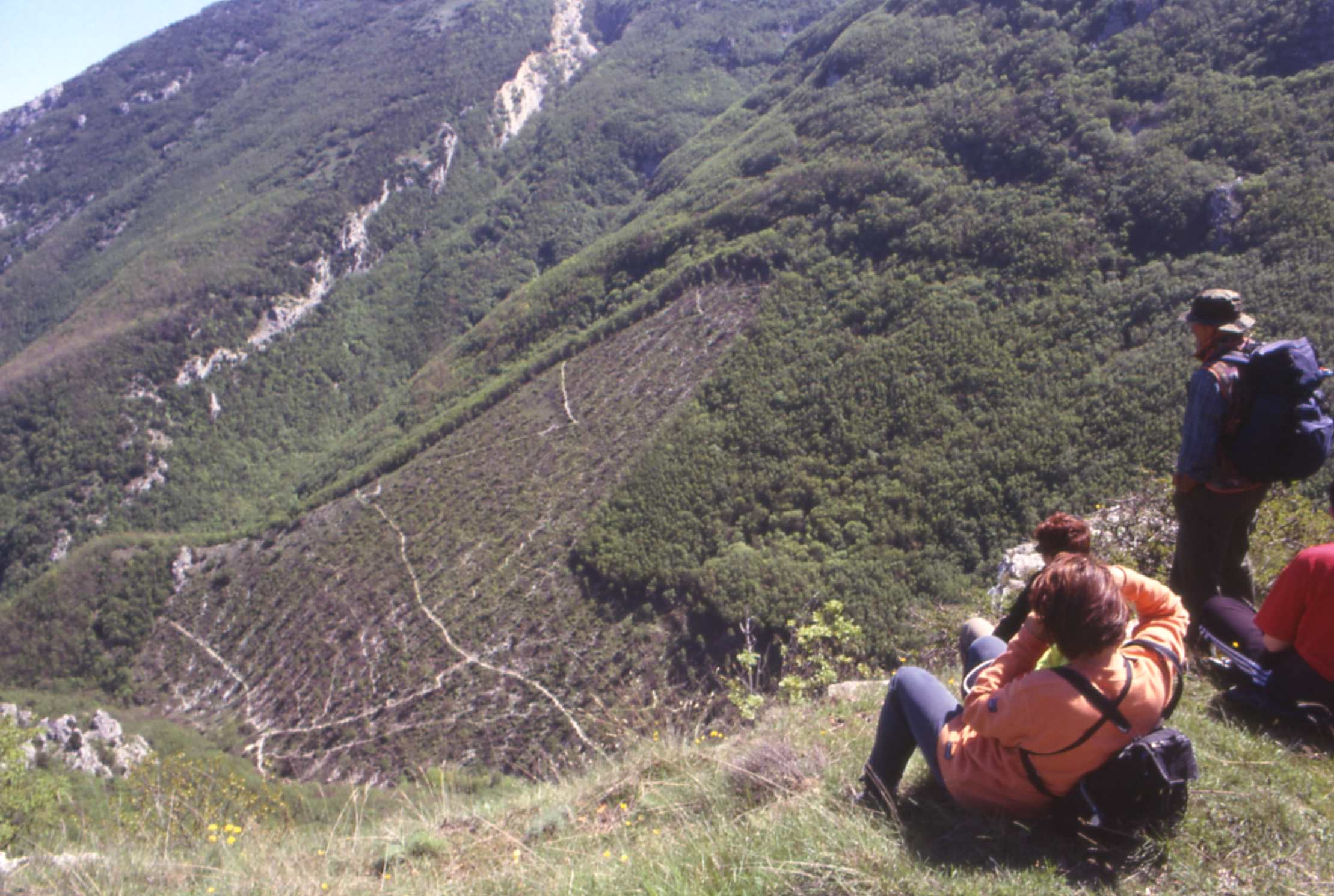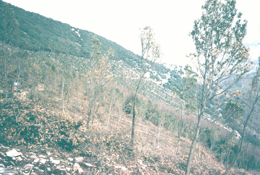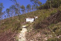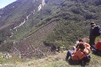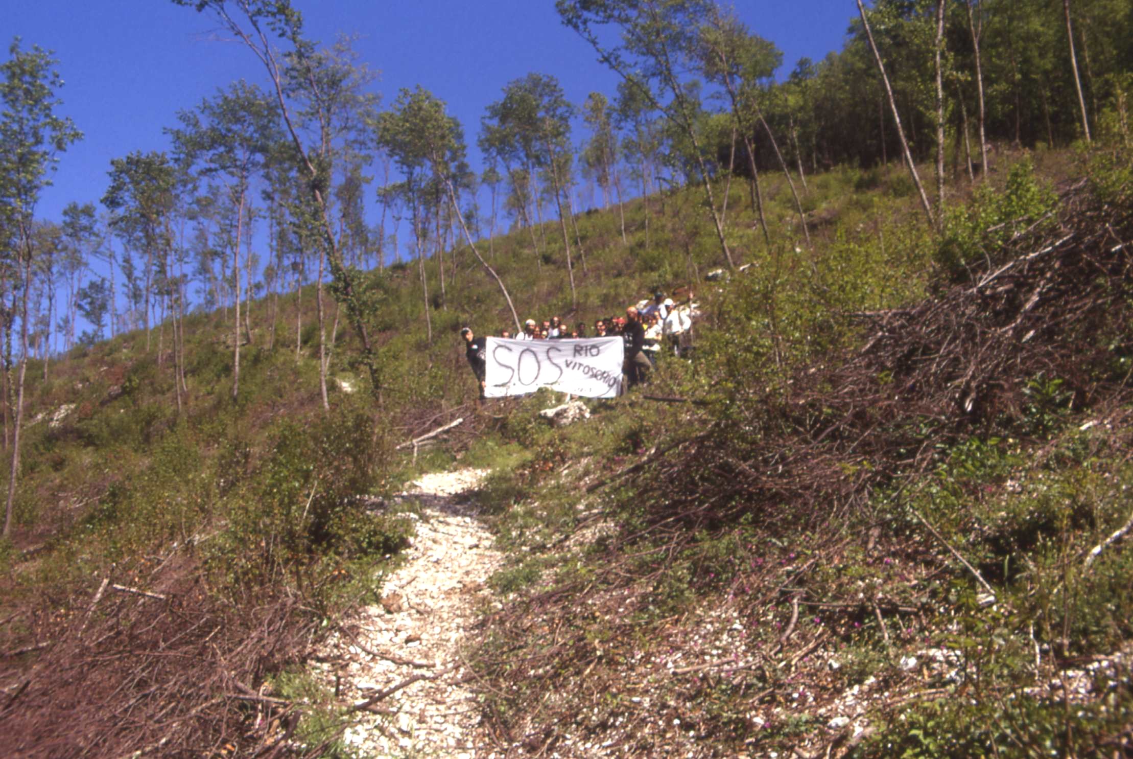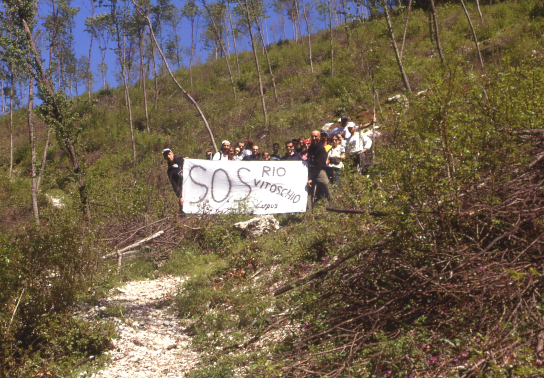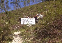 | Bosco deturpato da un taglio dissennato di un paio d'anni fa nei pressi del rio Vitoschio (Monte Nerone). | Sit in di protesta dei soci Lupus in Fabula all'interno dell'area devastata. | |