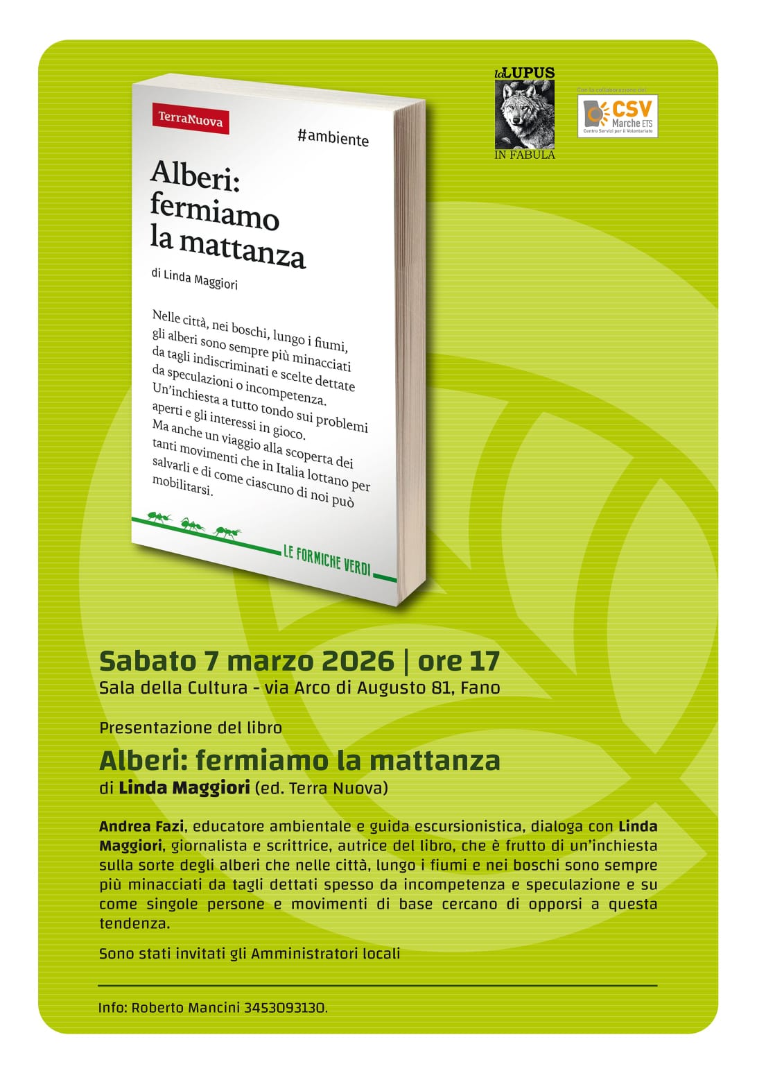 - Presentazione del libro “Alberi: fermiamo la mattanza” di Linda Maggiori